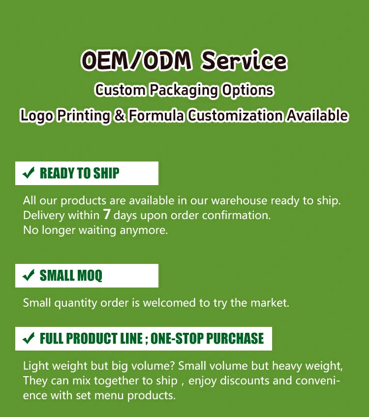 - Customization: OEM/ODM (logo printing, formula adjustment, packaging design)
