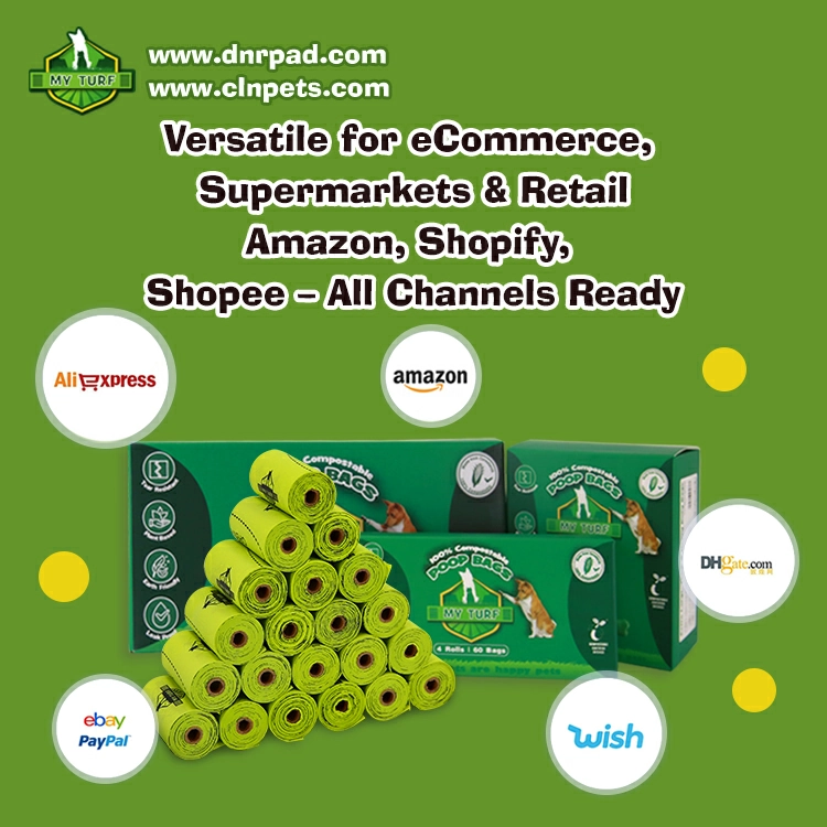 As a leading manufacturer of ASTM D6400 and EN13432 certified dog poop bags, we provide premium eco compostable dog waste bags for wholesalers, pet stores, supermarkets, and online retailers. Our dog poop bags are made from PBAT, PLA, and cornstarch materials, featuring leak-proof double layer, odor control drawstring seal, and perforated edges for easy tear-off. With FDA certification, fast 1-3 day shipping, small MOQ starting from 1 carton, and custom logo printing, we help global pet businesses build their eco-friendly brand image efficiently.